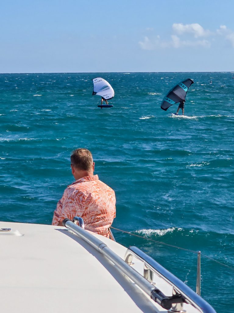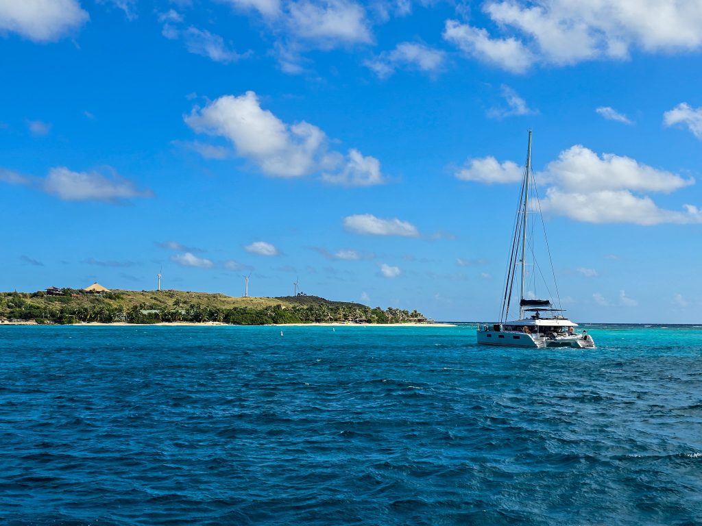 Today was a longer sail, about 5 hours, taking us from a quiet anchorage in Virgin Gorda to the island of Jost Van Dyke. Along the way, we passed Necker Island (Richard Branson’s island). We had strong following winds the whole way and some big seas (about 4 feet). About 10 miles offshore, we did some pretty intense man overboard drills. With nearly 30 mile and hour winds, seas large enough to toss the boat around a bit (half the kitchen equipment ended up on the floor), and a 30,000-pound boat, it was very challenging. But also a great way to build confidence!