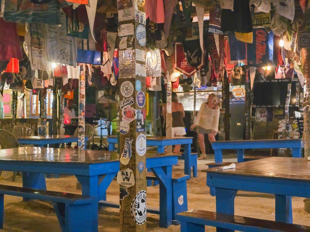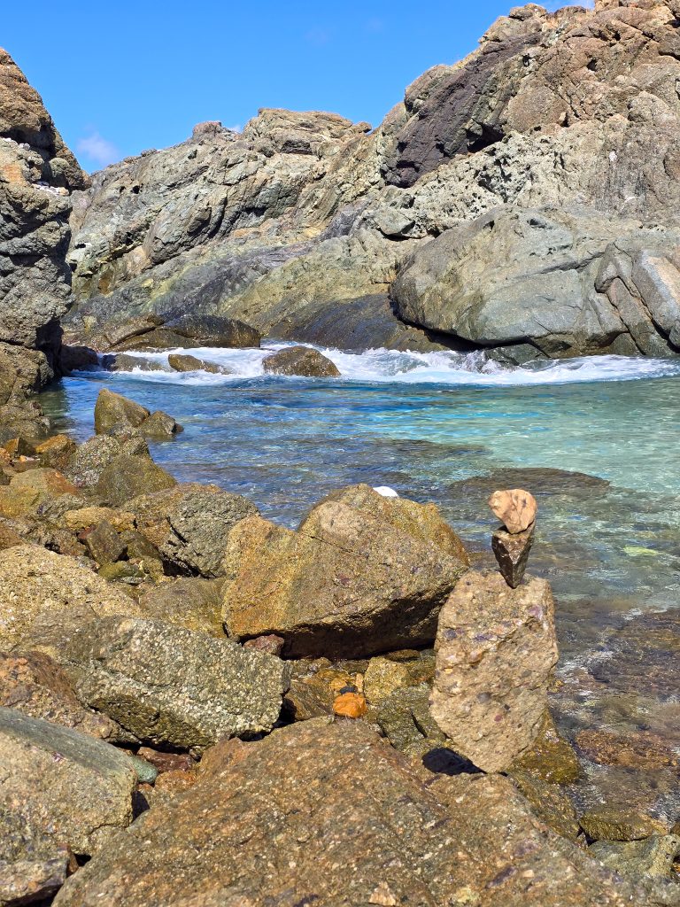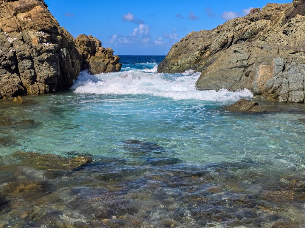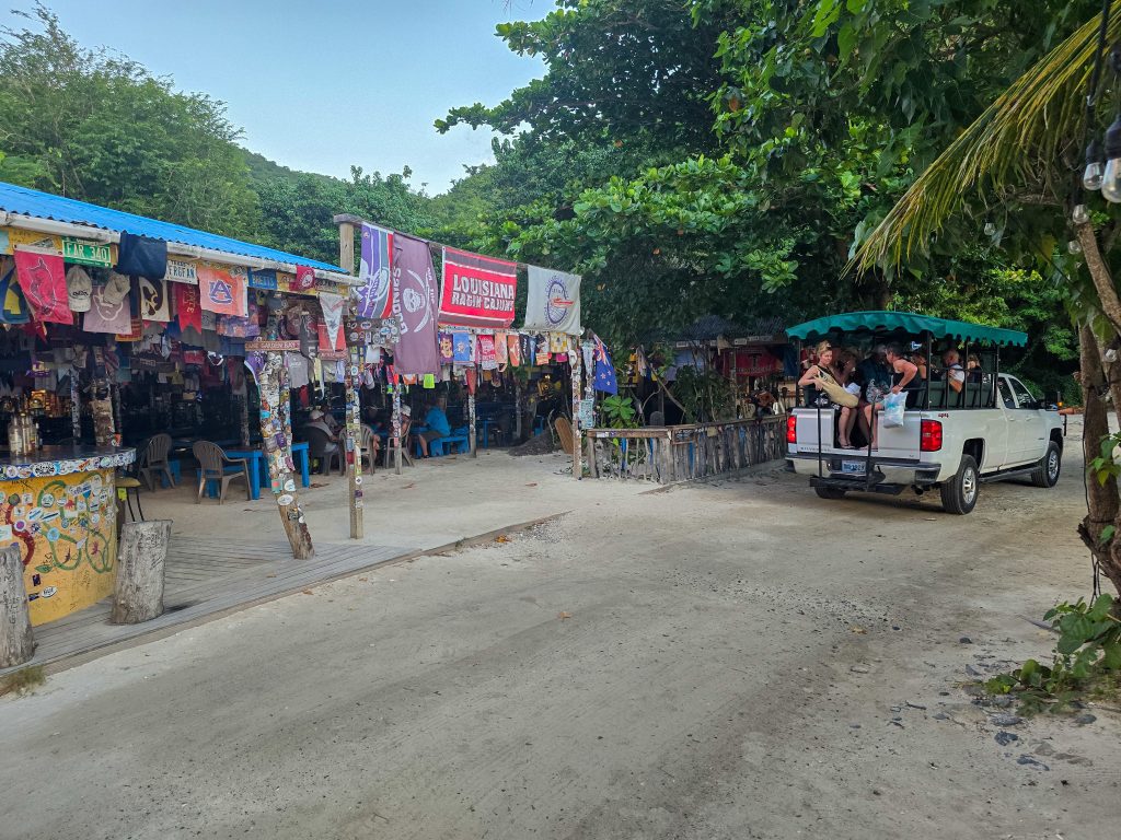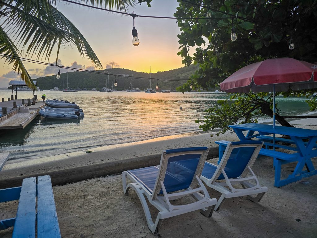 We were all rewarded with a great time when we anchored in Long Bay near Foxy’s Taboo and hiked to the Bubbly Pool. It’s a sheltered pool with a small inlet where the waves come crashing in. The pool fills with bubbles, and the waves come in and out. And we had it all to ourselves for most of the visit. So beautiful! On the way back, we stopped in at “Foxy’s Taboo” for a quick drink, and then it was back to the boat for about 30 minutes of sailing to another bay to visit “Foxy’s” (the original) for dinner and drinks. It was the epitome of a beach bar right out of a Jimmy Buffett song. And as it happens, this was one that Jimmy Buffett frequented and often went up on stage and sang, apparently. Good food, great company, and a bit of dancing too.