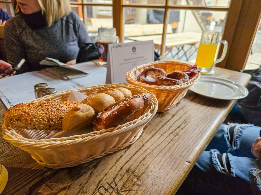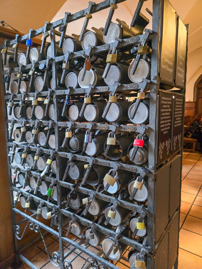 We had lunch at the Hofbräuhaus München beer garden (and toasted with some orange soda). Something really neat was that if you are local, you can store your beer stein at the beer garden. There are racks, and you just lock your glass up with a padlock and then it’s waiting for you the next time you come. Pretty cool!