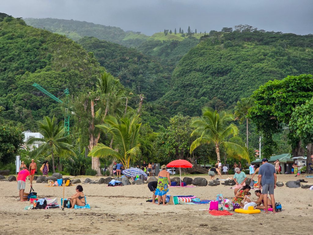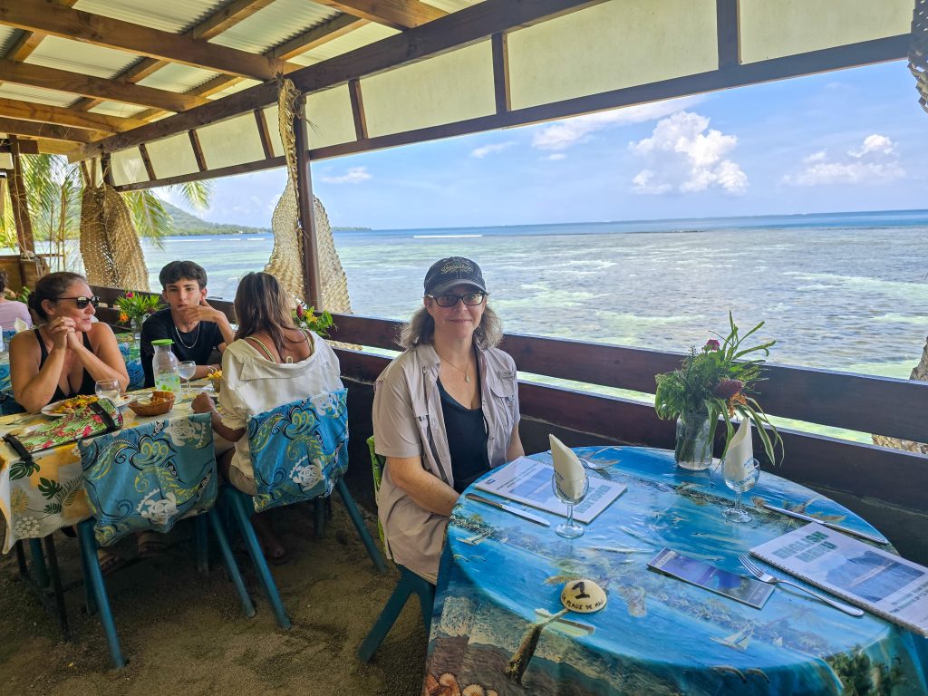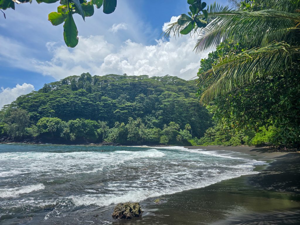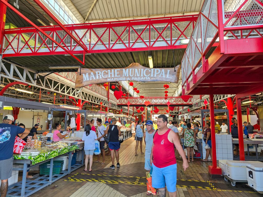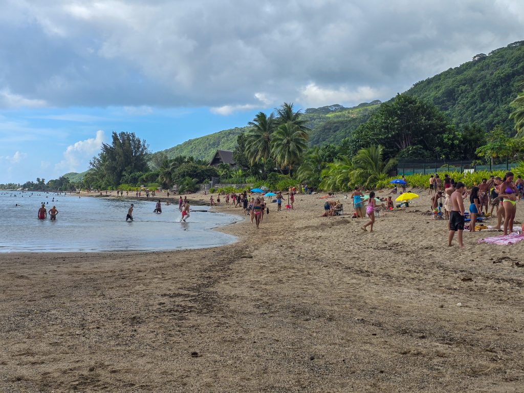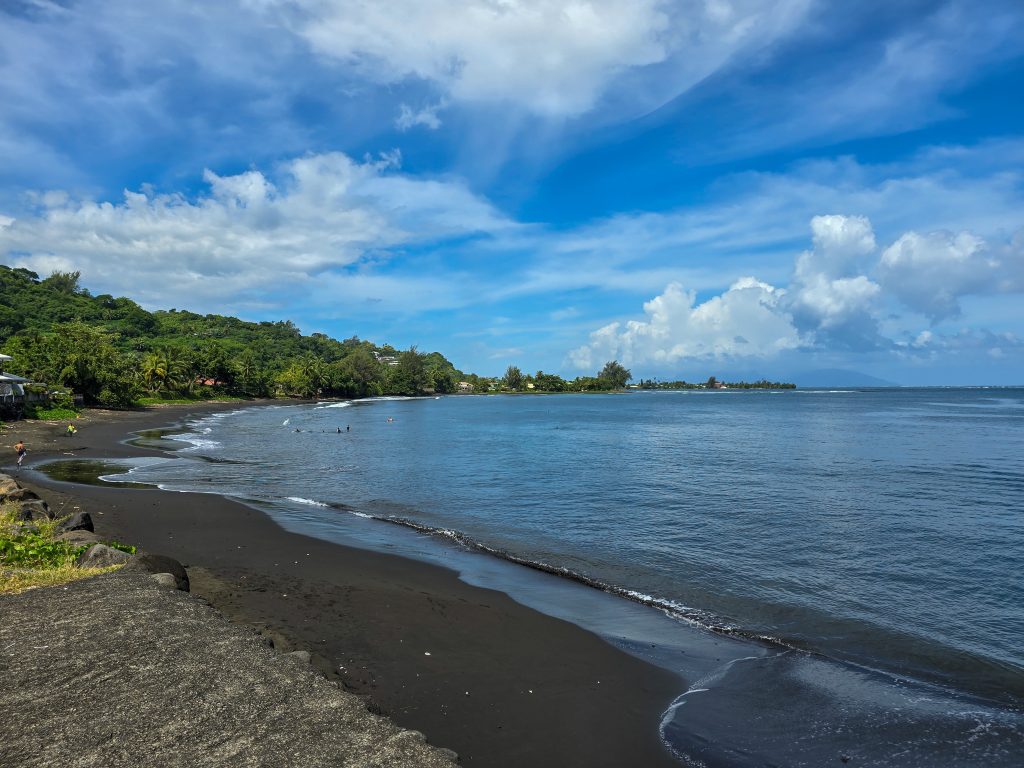 Tahiti is the most populous island (by far) of the Tahitian islands, and where international flights land. We spent the first day checking things out by driving around the road that circles the entire island. Along the way, we visited the island’s main market, stopped at a few beaches (black sand beaches on the east side and white sand on the west side of the island), and had some great food all along the way.