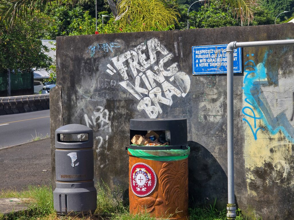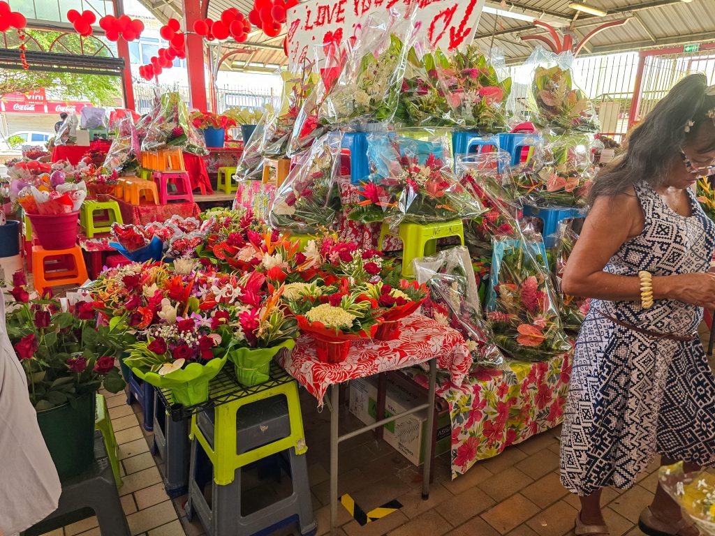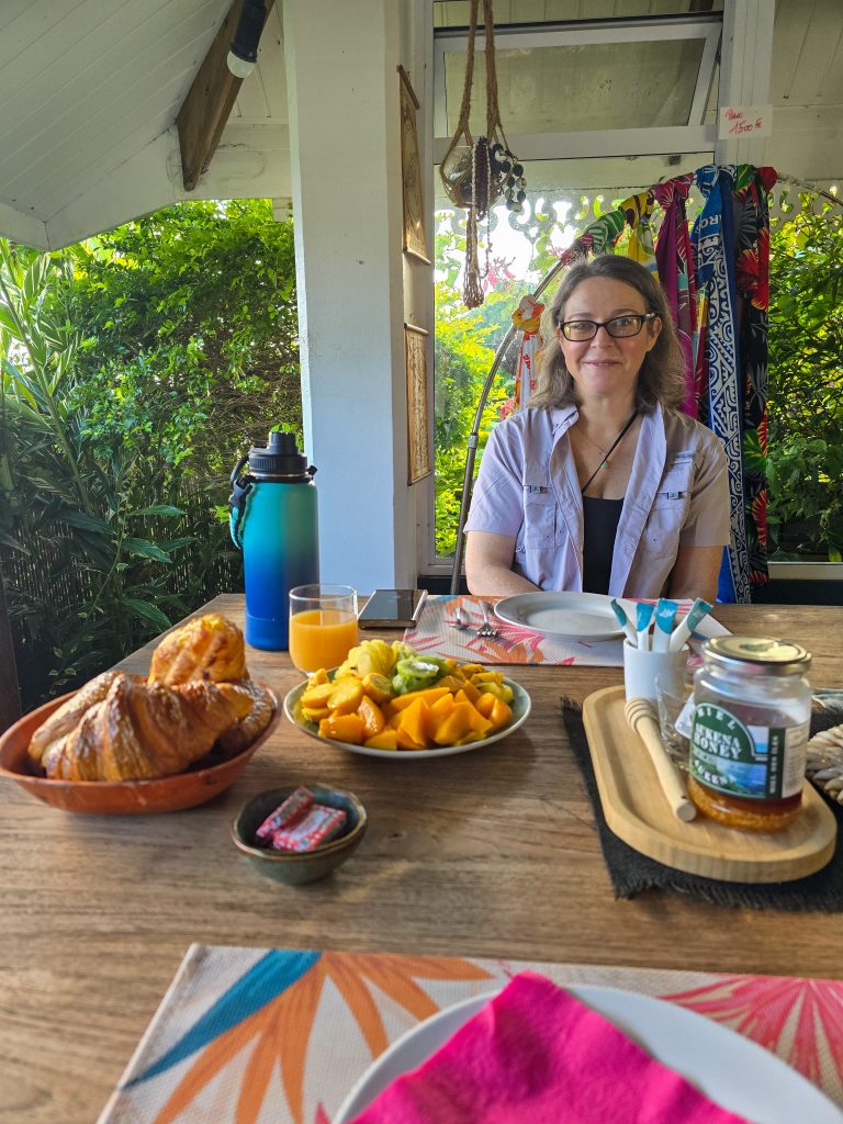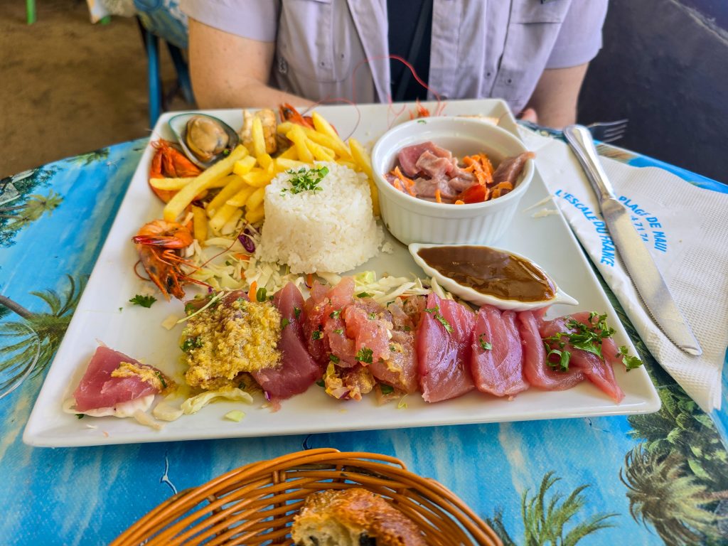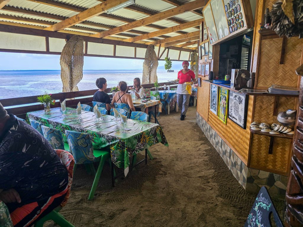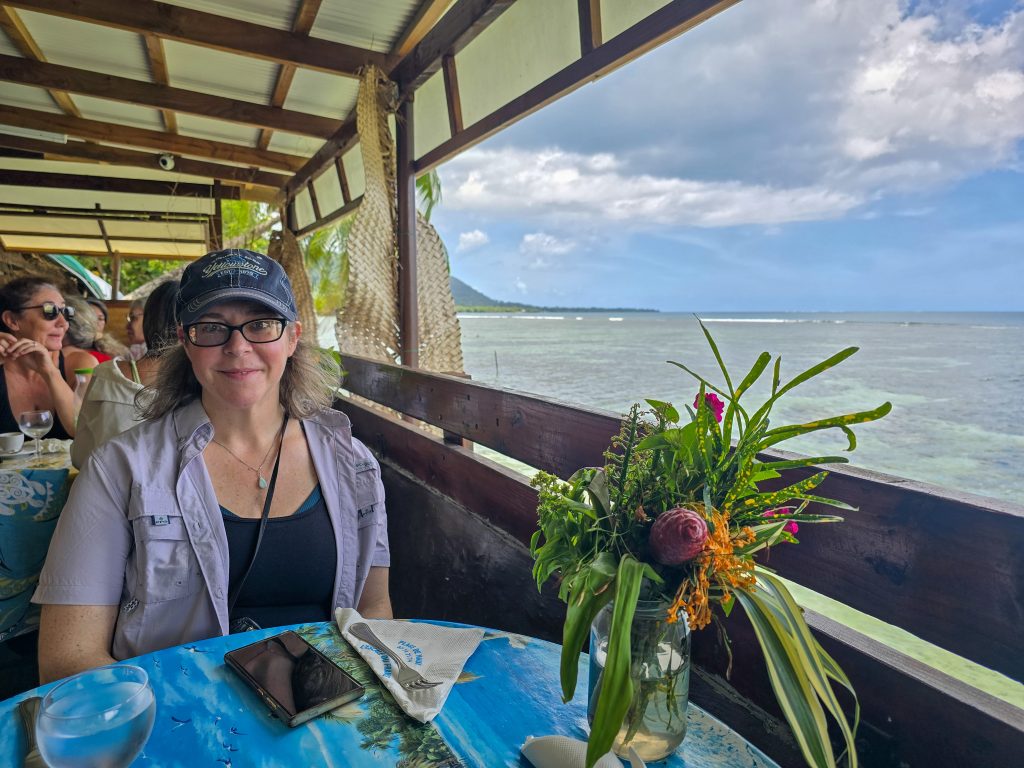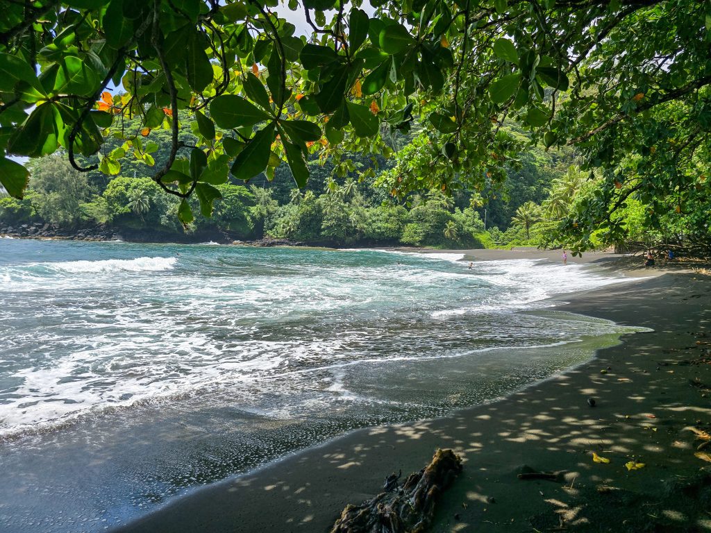 Tahiti is the most populous island (by far) of the Tahitian islands, and where international flights land. We spent the first day checking things out by driving around the road that circles the entire island. Along the way, we visited the island’s main market, stopped at a few beaches (black sand beaches on the east side and white sand on the west side of the island), and had some great food all along the way.
