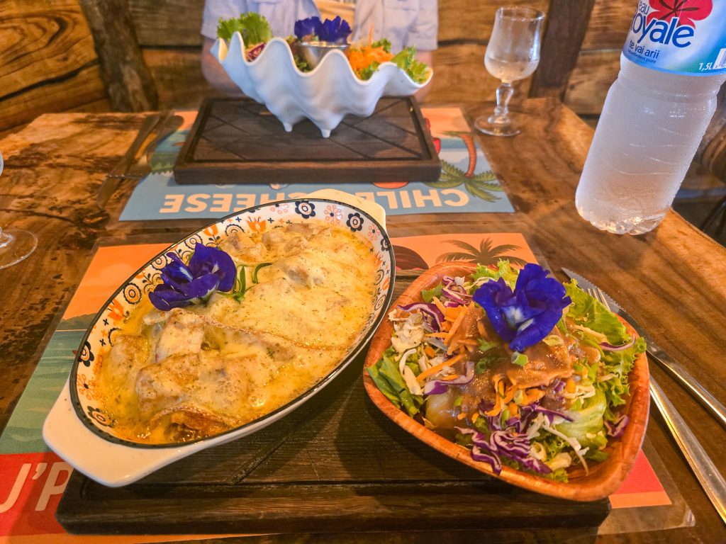Today, we broke away from the rest of the group for some adventure. The boat was moving to the other side of Bora-Bora, but Jennie and I wanted to see some of the island. So while the rest of the group spent the day seeing the island from the water, we took the dinghy to shore and rented a scooter to see it from land. Along the way, we did some shopping and had lunch. The whole island takes just about an hour to drive around (if you went nonstop). But we made plenty of stops along the way, checking out beaches, stores, and anything else that looked interesting.