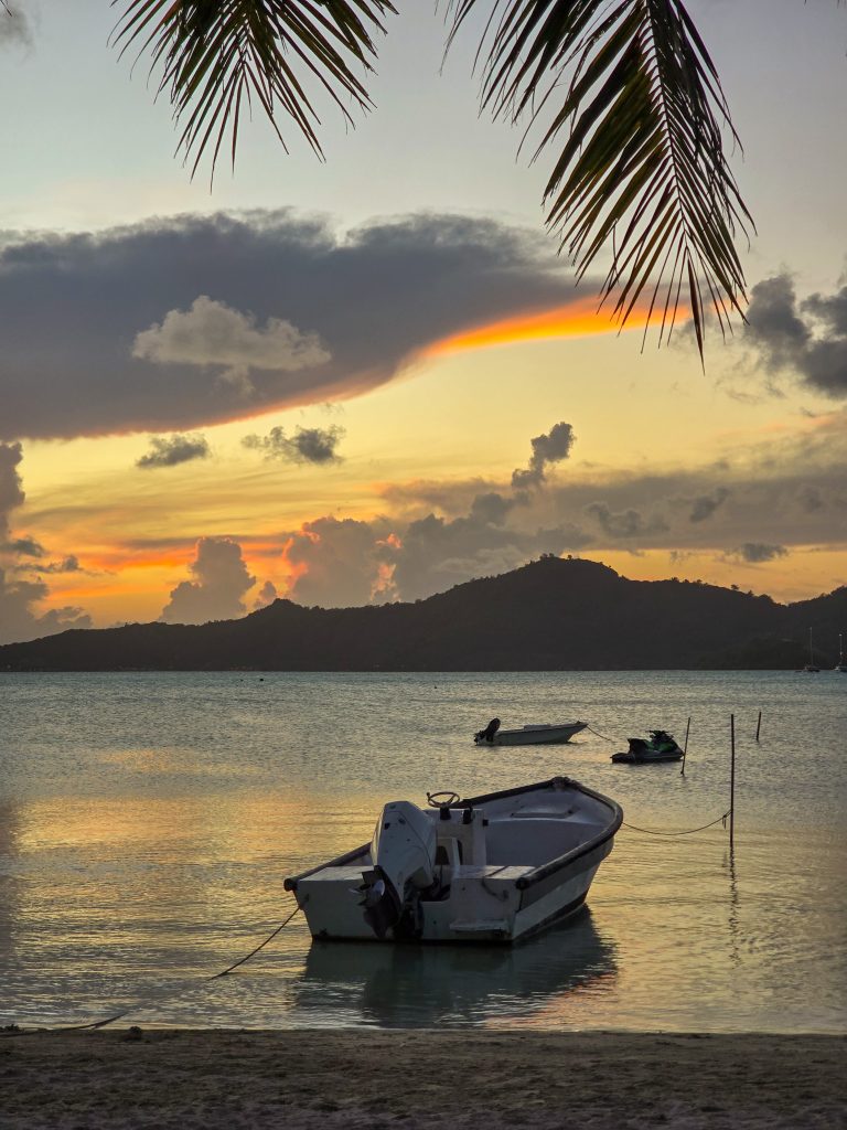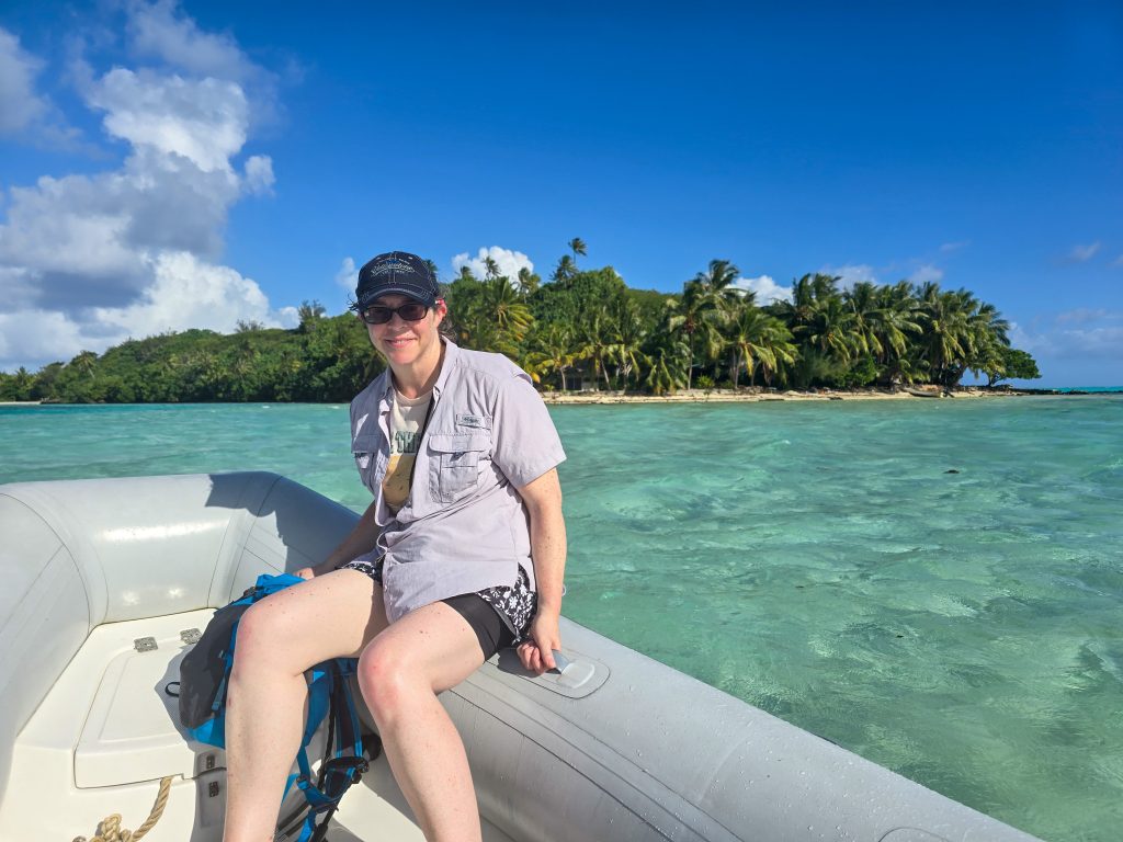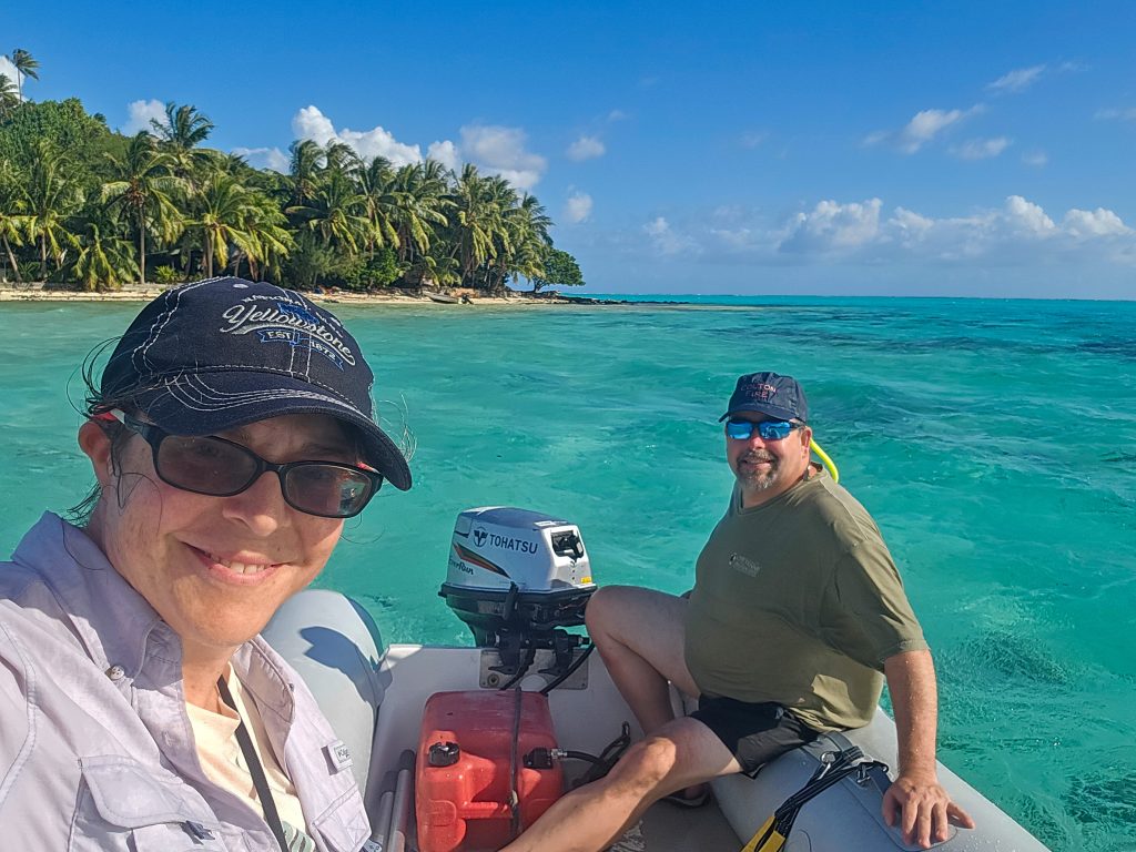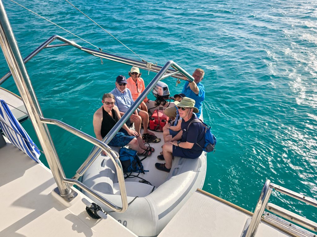 After our day on the island, we had to meet up with the boat before heading to a beach BBQ on shore. We had the dinghy and a pretty good idea of where we would find the boat, so we set off for a 4-mile ride. It didn’t sound so bad in the morning when we were making the plan, but by the time we went the wind had kicked up and it turned out that there were a lot of shallow coral areas we had to pass through to get there. What I expected would be about 20 minutes of easy dinghy driving turned into an hour and a half of waves and getting soaked. But the water was warm, and the scenery was BEAUTIFUL, so it was all good.