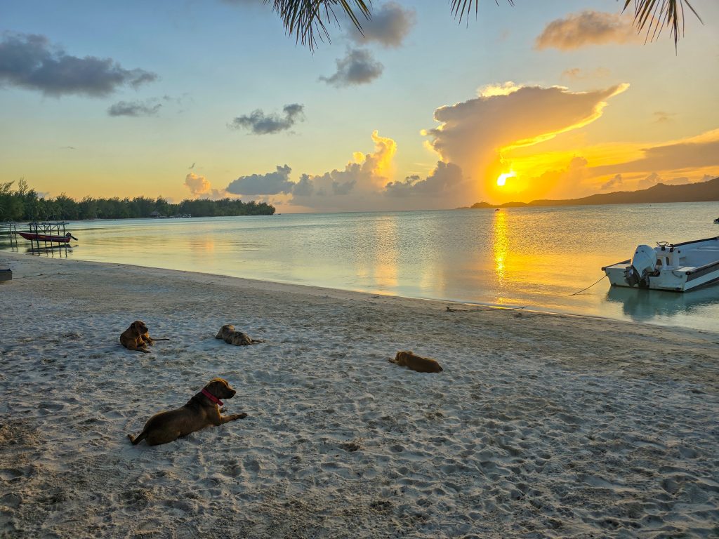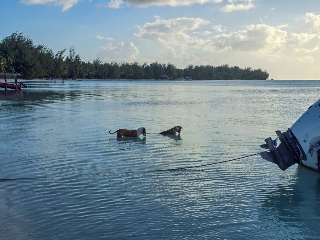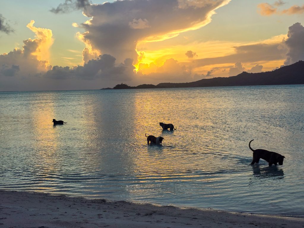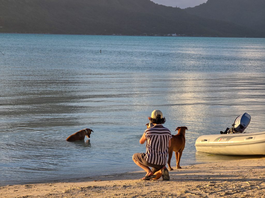 The day ended with what turned out to be the highlight of the trip. We anchored in a protected bay just off the shore of a beautiful beach on Piti Aau where a family has some property farming coconuts. They have lived on this piece of land for 5 generations, and have recently started trying to build a bit of a tourism business on their farm. They hosted a BBQ on the beach for us, and let us walk around their property. On one side is this protected bay with a beautiful beach, and about a quarter mile on the other side is exposed to the open ocean with big waves and beautiful coral. Absolute paradise. The best part, though, was watching the dogs. The son (in his early 30’s) had recently adopted about 8 dogs, and they just roam free on the farm. He told us that one recently caught a crab, pulled it up on shore, and ate it. Ever since, all of the dogs have developed a taste for crab, and now fish for them every night. In the time we were there, several of the dogs spent a few hours totally motionless in the water hunting, waiting for a crab to come along before they snatched it!