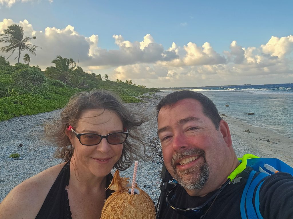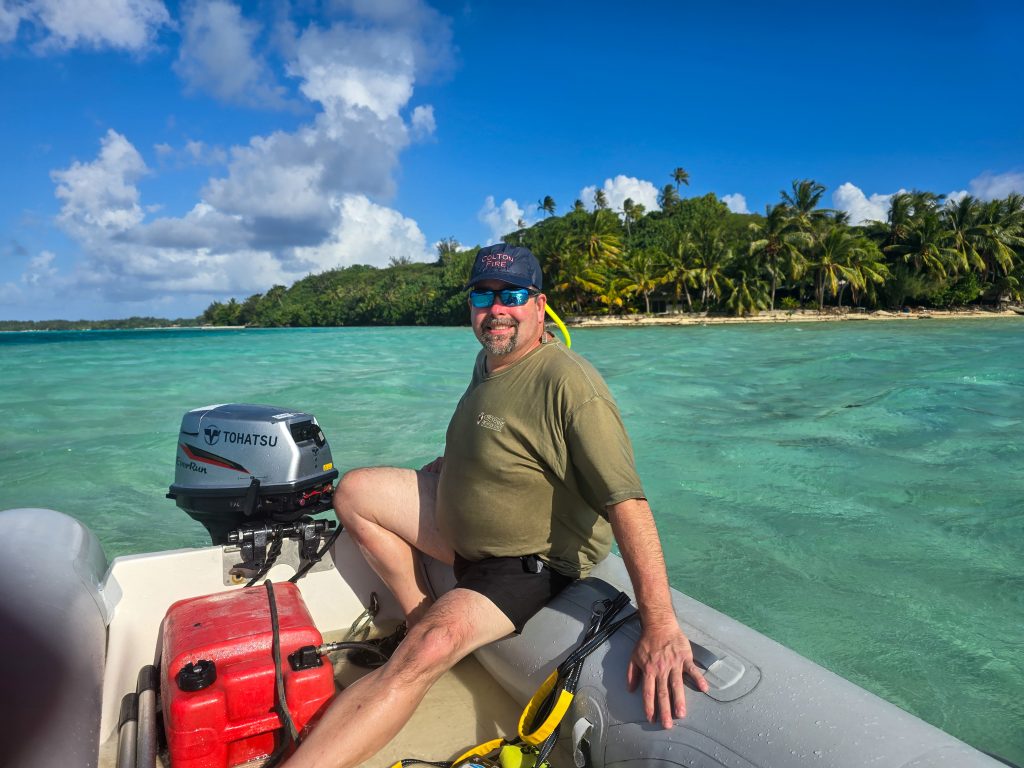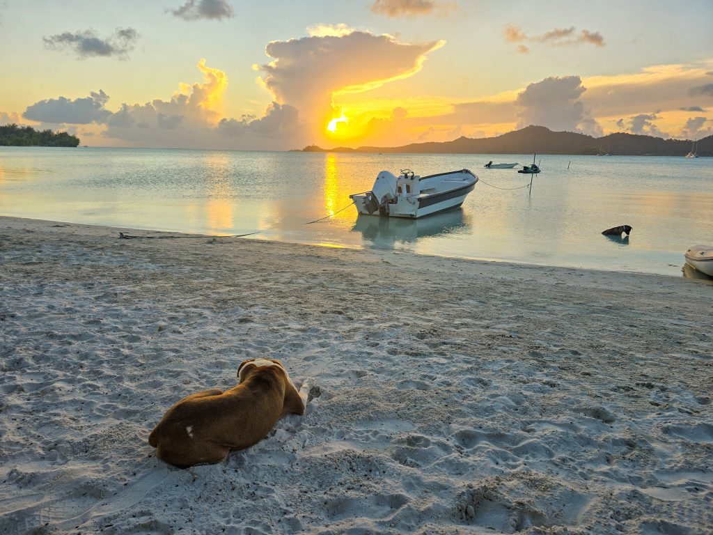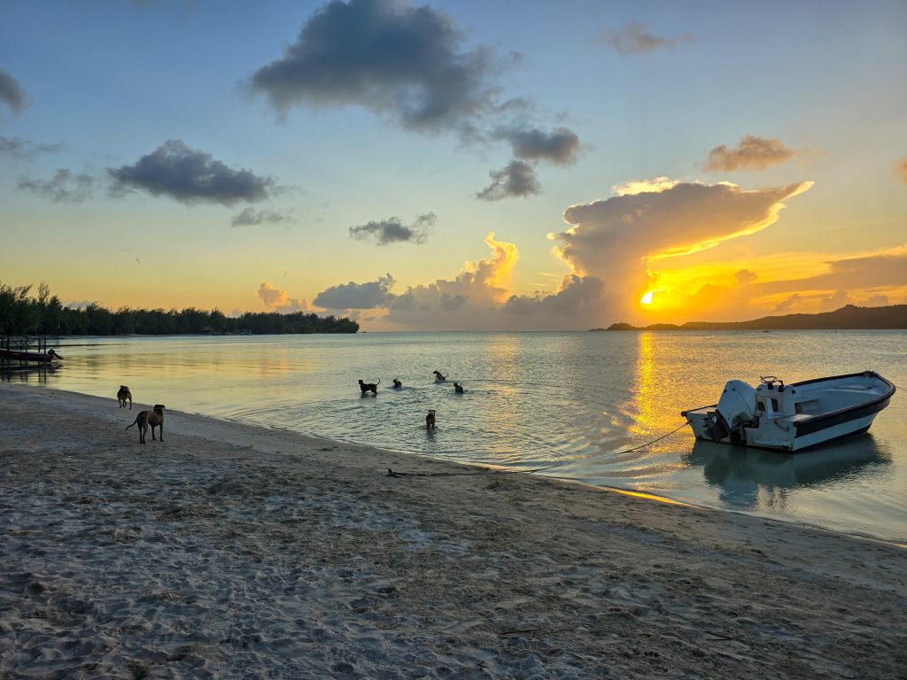 The day ended with what turned out to be the highlight of the trip. We anchored in a protected bay just off the shore of a beautiful beach on Piti Aau where a family has some property farming coconuts. They have lived on this piece of land for 5 generations, and have recently started trying to build a bit of a tourism business on their farm. They hosted a BBQ on the beach for us, and let us walk around their property. On one side is this protected bay with a beautiful beach, and about a quarter mile on the other side is exposed to the open ocean with big waves and beautiful coral. Absolute paradise. The best part, though, was watching the dogs. The son (in his early 30’s) had recently adopted about 8 dogs, and they just roam free on the farm. He told us that one recently caught a crab, pulled it up on shore, and ate it. Ever since, all of the dogs have developed a taste for crab, and now fish for them every night. In the time we were there, several of the dogs spent a few hours totally motionless in the water hunting, waiting for a crab to come along before they snatched it!