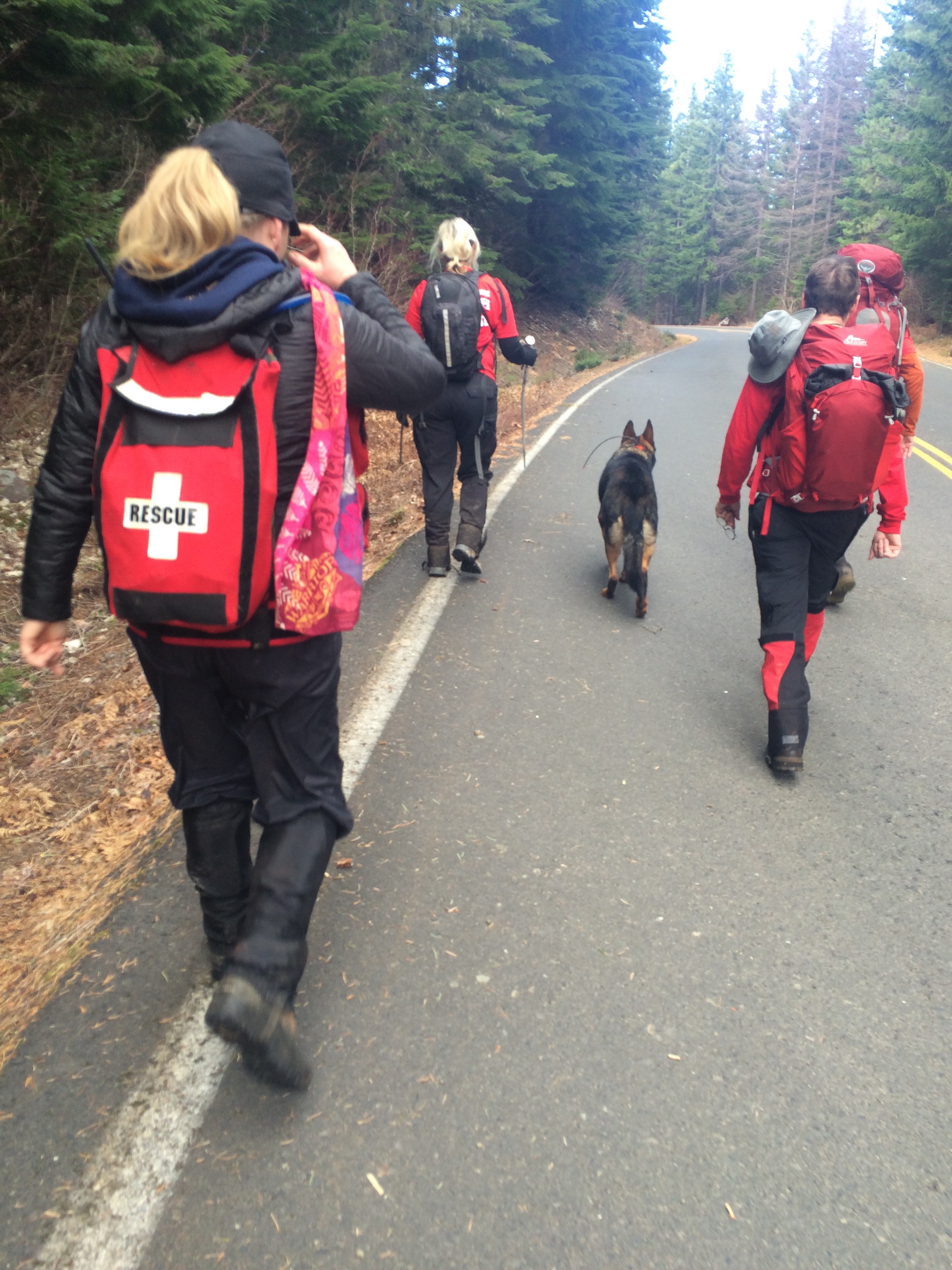 My First Ground Search Posted on February 16, 2015 I got to go on my very fist ground search! A two and a half hour drive to Mount Adams, five hours of hiking through the forest and vine maple, all the while following our Human remains dog Ava.
